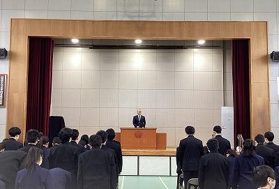 生徒指導主事の先生からの冬休みの注意も聞いて、生徒は冬休みの準備万端の様子でした。