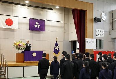 今年度最後に全校生徒が集まり、修了式と離退任式を行いました。
