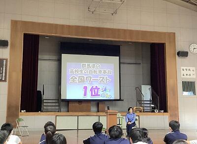 生徒も「全国で群馬県の高校生の自転車事故が一番多いことを知った」「大人になってからもマナーを守っていきない」など、様々な感想をもつことができました。