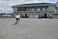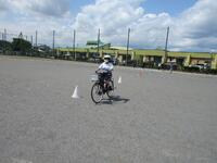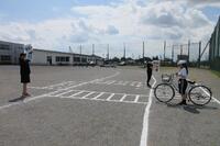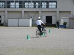 自転車通学者は、ジグザグ運転や、ブレーキの確認も行いました。
