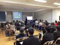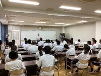 12月8日(金)に明電ユニバーサルサービス株式会社支配人、藤原勇様にお越しいただき、1学年産業科の生徒・保護者を対象に進路講演会を行いました。