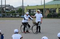 1学年を対象に、交通安全教室が校庭で開かれました。