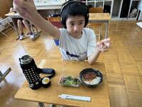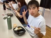 帰校後の昼食では、レストランわんだーらんどのハンバーグ弁当をおいしくいただきました。