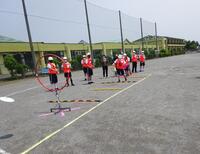 4つのチームに分かれて、風船バレー、しっぽとり、へびじゃんけん、ドッチビーを行いました。