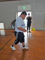 自転車に乗る生徒と徒歩の生徒に分かれ、教師の手本や説明の通りに通行しました。