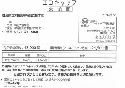 エコキャップの回収について、今年度もたくさんのご協力ありがとうございました。
