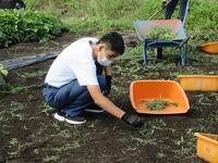 夏休みに農場で草むしりと収穫をしました!(8月28日)