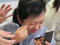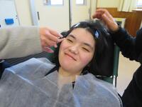 また男女別実習として、男子はヘアスタイリング実習、女子はフルメイク実習を行いました。生徒たちにとって初めての経験だったようで、楽しみながら実習に取り組む様子が見られました。